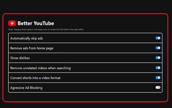 Better YouTube es una extensión de Chrome diseñada para optimizar la experiencia del usuario en YouTube al eliminar distracciones y mejorar la accesibilidad del contenido. Este complemento gratuito ofrece una variedad de funciones, incluyendo el bloqueo de anuncios no deseados, la eliminación de YouTube Shorts de la página de inicio y la conversión de Shorts en videos tradicionales. Estas funcionalidades tienen como objetivo simplificar el proceso de visualización, permitiendo a los usuarios centrarse en el contenido que prefieren sin interrupciones.